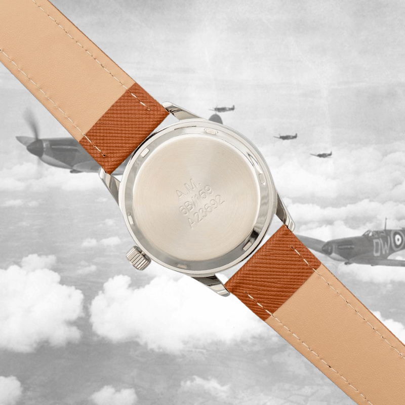 La montre The Airman est une reproduction inspirée de l’emblématique montre mili­tai­re Air Ministry A.M. 6B/159 utilisée par les pilotes et navigateurs de la Royal Air Force (RAF) britannique pendant la Seconde Guerre mondiale. Elle combine une esthétique historique authentique à une conception adaptée au quotidien moderne.