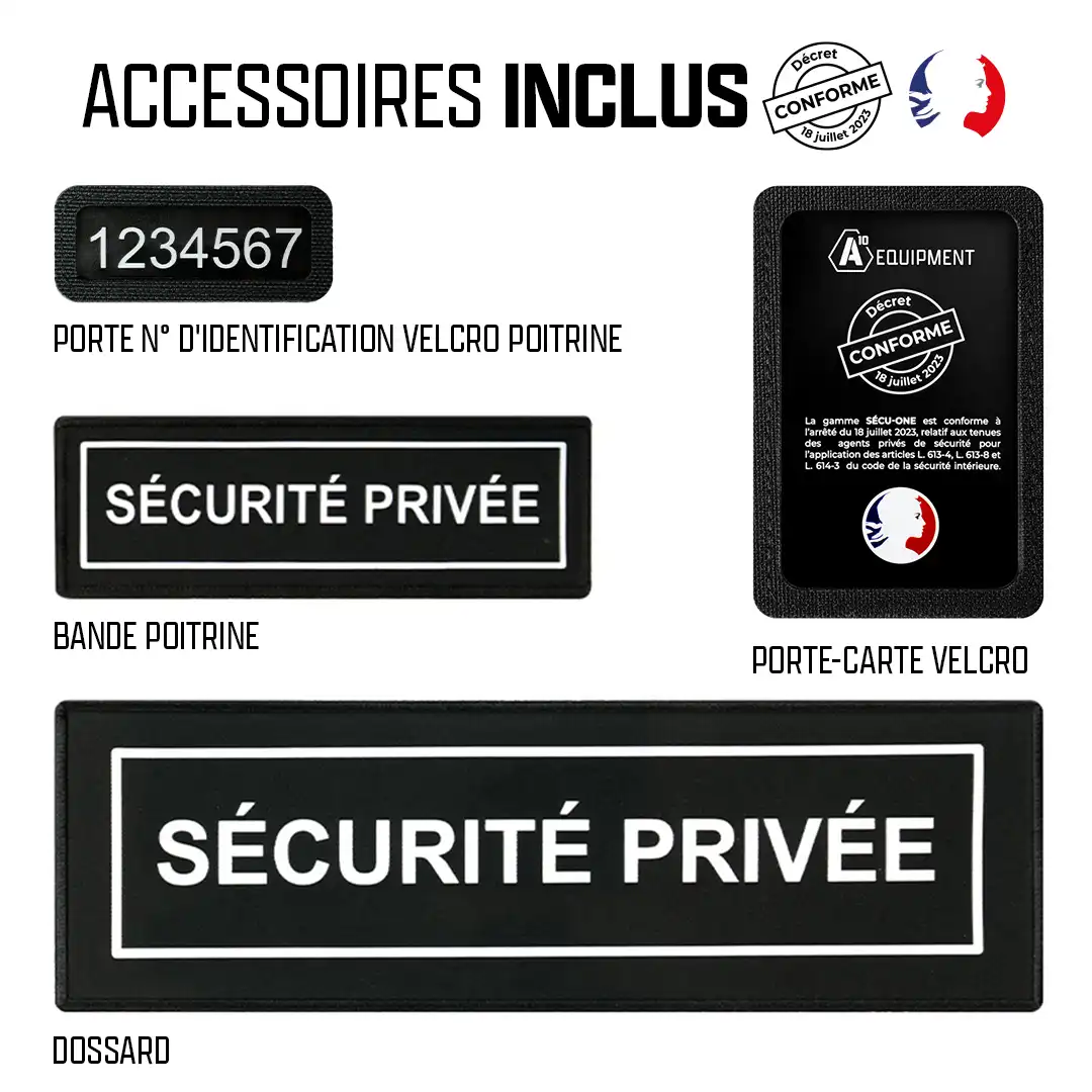 • 2 patchs rétro-réfléchissants « SÉCURITÉ PRIVÉE » (dos et poitrine)