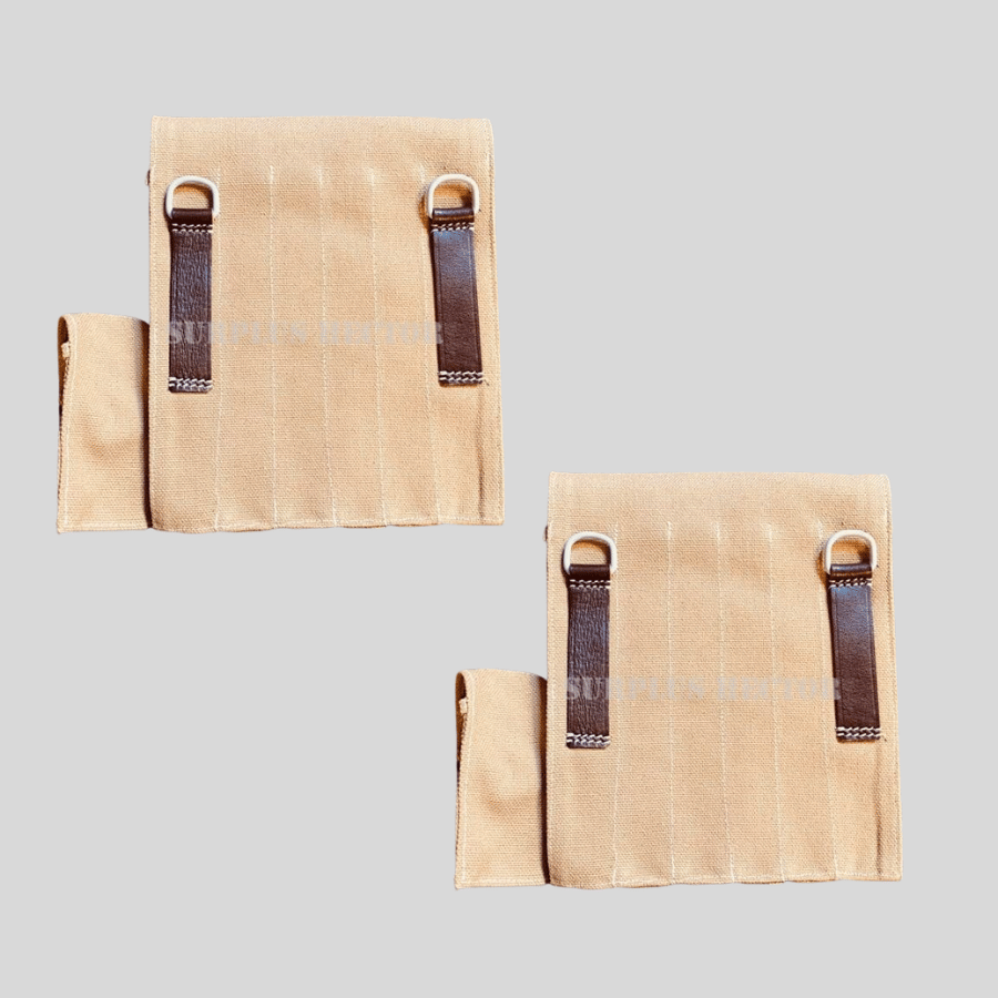 Reproduction d'une pair de porte Chargeur Sacoche Allemande MP40 de la seconde guerre mondiale en Canvas de coton solide et clair, couleur utilisé par les troupe Afrika Korps allemande autour de la Méditerranée pendant le seconde guerre mondiale WW2.