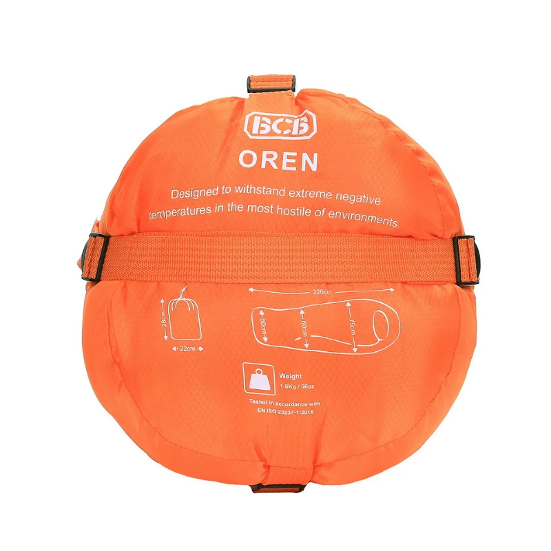 Côté performances, il offre une température de confort jusqu’à 0°C, une limite basse à -7°C et une température extrême jusqu’à -12°C. Avec un poids de 1,6 kg et des dimensions de 220 x 60 x 50 cm (28 x 22 cm une fois compressé), le Oren reste facile à transporter tout en assurant une protection optimale contre le froid.